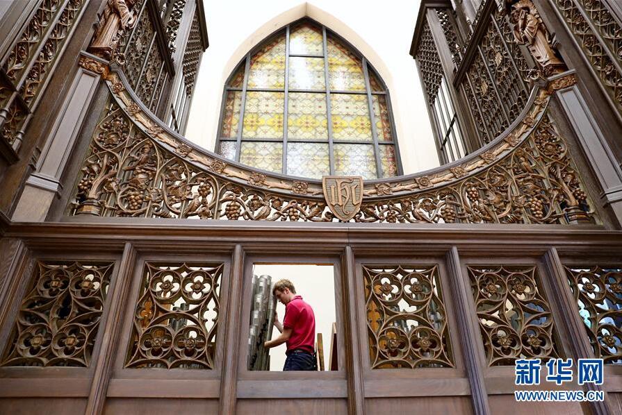 德國管風(fēng)琴修理師弗朗茨·羅思在進(jìn)行卡薩翁內(nèi)部維修工作(10月23日攝)。 100年前,它誕生在美國波士頓,轟動一時(shí),成為北美四大名琴之一。然而,歷史的變遷中,它一度傷痕累累,無法再發(fā)聲。新華社記者 姜克紅攝