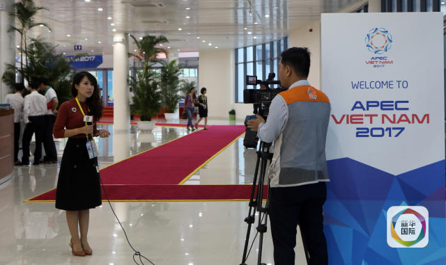 11月5日,在越南峴港,媒體記者在亞太經(jīng)合組織領(lǐng)導(dǎo)人會議周國際媒體中心進(jìn)行報(bào)道。新華社記者李鵬攝