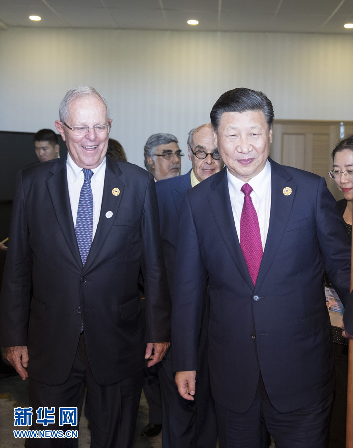 發(fā)表演講后,習(xí)近平簡短會見了專程前來聆聽演講的秘魯總統(tǒng)庫琴斯基。