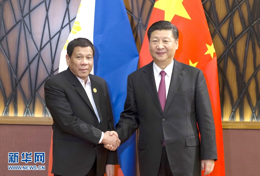 11月11日,國(guó)家主席習(xí)近平在越南峴港會(huì)見(jiàn)菲律賓總統(tǒng)杜特爾特。新華社記者 費(fèi)茂華 攝