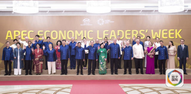 11月11日,亞太經(jīng)合組織第二十五次領(lǐng)導人非正式會議在越南峴港舉行。國家主席習近平出席并發(fā)表題為《攜手譜寫亞太合作共贏新篇章》的重要講話。這是會議期間,國家主席習近平同其他亞太經(jīng)合組織成員經(jīng)濟體領(lǐng)導人、代表合影。新華社記者李濤攝