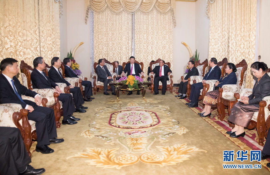 11月13日,中共中央總書記、國家主席習近平在萬象會見老撾人民革命黨中央委員會前總書記、前國家主席朱馬里。老撾人民革命黨中央委員會總書記、國家主席本揚等參加會見。新華社記者 丁林 攝