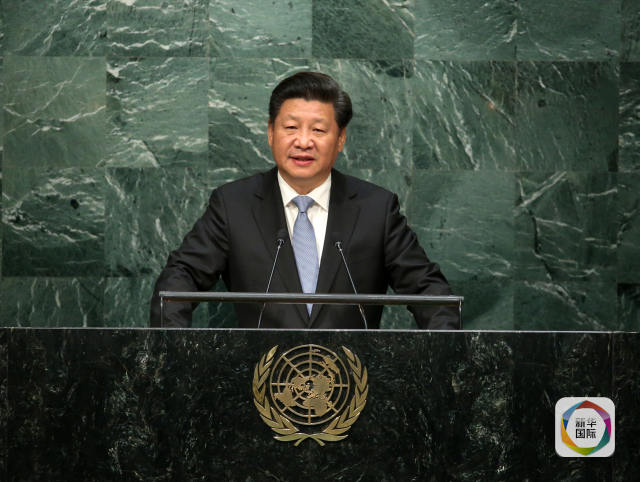 2015年9月28日,國家主席習近平在紐約聯(lián)合國總部出席第70屆聯(lián)合國大會一般性辯論并發(fā)表題為《攜手構(gòu)建合作共贏新伙伴 同心打造人類命運共同體》的重要講話。新華社記者龐興雷攝