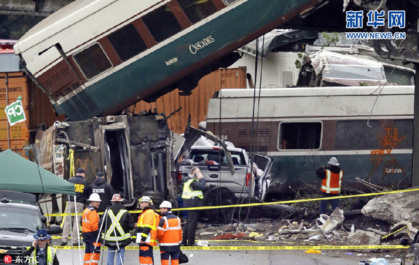美國(guó)有線電視新聞網(wǎng)報(bào)道,由西雅圖開(kāi)往波特蘭的501次列車(chē)18日7時(shí)40分左右在杜邦脫軌,事發(fā)地位于塔科馬以南大約30公里。列車(chē)14節(jié)車(chē)廂中13節(jié)脫軌,其中數(shù)節(jié)沖出高架橋,墜落在5號(hào)州際公路路面,場(chǎng)面一片混亂。