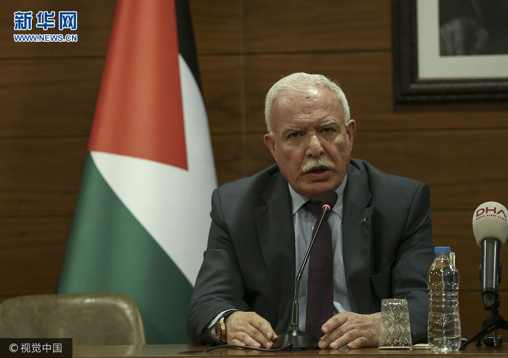 當地時間2017年12月20日,土耳其伊斯坦布爾,巴勒斯坦外長馬勒基出席新聞發(fā)布會,呼吁聯合國大會在21日舉行的緊急會議上認定美國承認耶路撒冷為以色列首都的決定“無效”。(圖片來源:視覺中國)
