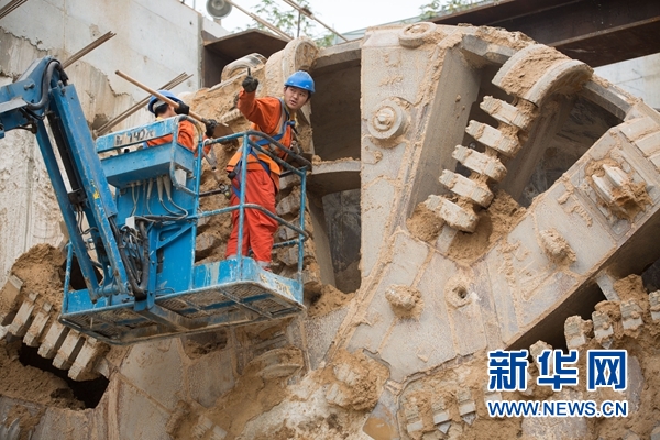 中國(guó)鐵建中土集團(tuán)實(shí)施的特拉維夫紅線輕軌首段盾構(gòu)隧道區(qū)間貫通現(xiàn)場(chǎng)。新華網(wǎng)發(fā)(郭昱 攝)
