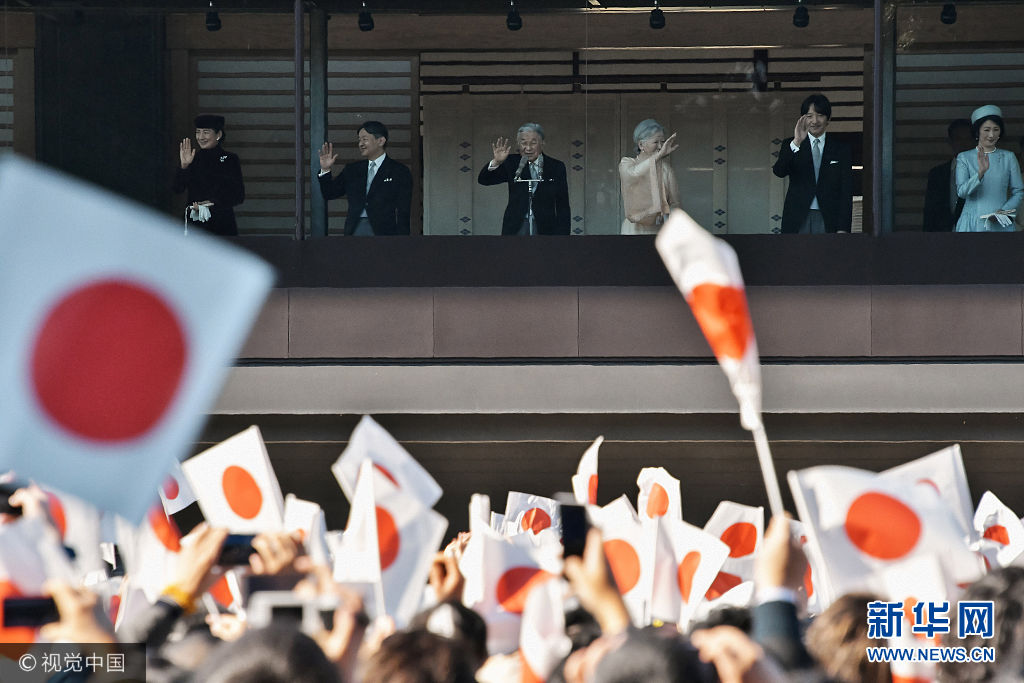 當(dāng)?shù)貢r(shí)間2017年12月23日,日本東京,日本明仁天皇慶祝84歲生日,在皇宮的陽臺(tái)上向祝福者揮手致意。(圖片來源:視覺中國(guó))