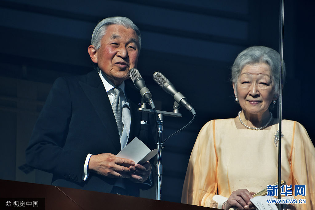 當(dāng)?shù)貢r(shí)間2017年12月23日,日本東京,日本明仁天皇慶祝84歲生日,在皇宮的陽(yáng)臺(tái)上向祝福者揮手致意。(圖片來(lái)源:視覺中國(guó))