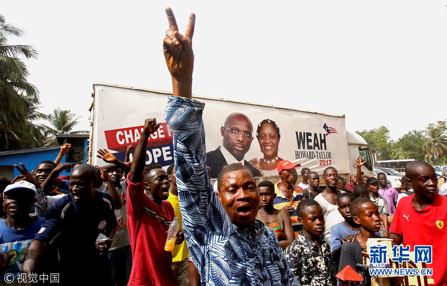 前世界足球先生維阿當(dāng)選利比里亞總統(tǒng) 支持者上街慶祝