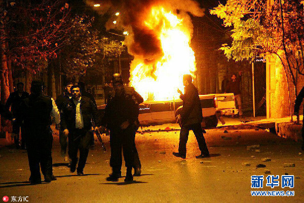 當(dāng)?shù)貢r(shí)間2017年12月30日,伊朗洛雷斯坦省,民眾參加示威活動(dòng),抗議總統(tǒng)魯哈尼統(tǒng)治下的伊朗高物價(jià)和惡劣經(jīng)濟(jì)狀況。(圖片來(lái)源:東方IC)