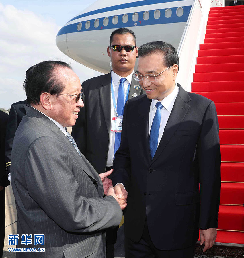 當(dāng)?shù)貢r間1月10日,國務(wù)院總理李克強(qiáng)乘專機(jī)抵達(dá)金邊,與柬埔寨、老撾、泰國、越南、緬甸領(lǐng)導(dǎo)人共同出席將在這里舉行的瀾滄江-湄公河合作第二次領(lǐng)導(dǎo)人會議。在出席會議后,李克強(qiáng)將應(yīng)柬埔寨首相洪森邀請對柬埔寨進(jìn)行正式訪問。新華社記者 劉衛(wèi)兵 攝
