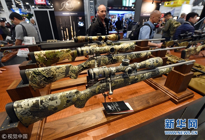 當(dāng)?shù)貢r間2018年1月23日,美國拉斯維加斯,美國全國射擊運動基金會(NSSF)舉辦槍支展銷會。(圖片來源:視覺中國)