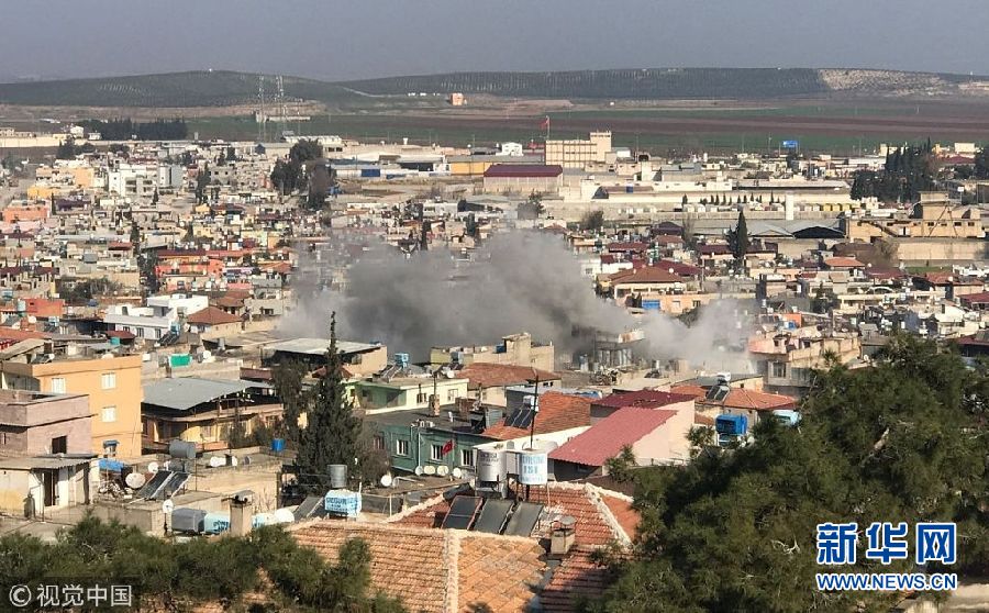 當(dāng)?shù)貢r(shí)間2月2日,土耳其哈塔伊,當(dāng)?shù)卦獾絹碜詳⒗麃啺⒎蛄值貐^(qū)庫爾德武裝的火箭彈襲擊。(圖片來源:視覺中國(guó))