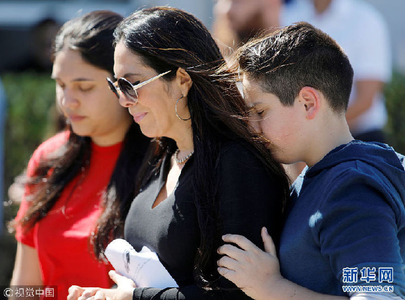 當(dāng)?shù)貢r間2018年2月15日,美國佛羅里達州波姆龐帕諾灘,民眾悼念槍擊案遇難者。當(dāng)?shù)貢r間14日下午2點25分左右,美國佛羅里達州南部帕克蘭一所高中發(fā)生槍擊案,目前已致至少17人死亡,多人受傷。(圖片來源:視覺中國)