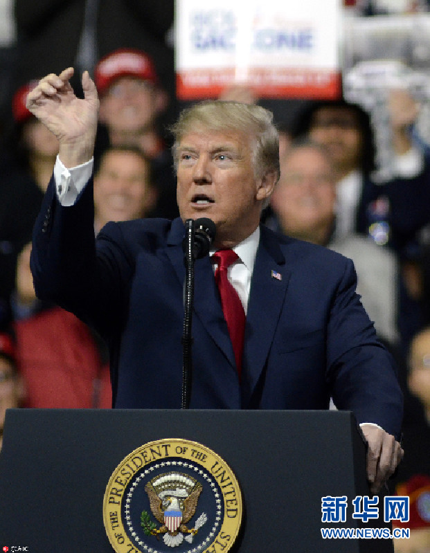 特朗普為共和黨聯(lián)邦議員競(jìng)選站臺(tái)演講 表情包滿天飛