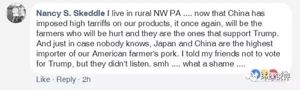?。ň幷咦ⅲ何易≡谫e州西北部農(nóng)村…中國(guó)準(zhǔn)備對(duì)我們的產(chǎn)品加征關(guān)稅,曾支持特朗普的農(nóng)民會(huì)再次受傷……我告訴過(guò)我的朋友不要給特朗普投票,但他們不聽(tīng)。哎,太無(wú)語(yǔ)了……)