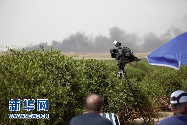 正午的驕陽(yáng)烤得人大汗淋漓,被大風(fēng)卷起的黃沙一個(gè)勁地往眼睛里鉆。雖然記者的眼睛經(jīng)常被汗水和沙子蹂躪地睜不開(kāi),但是這并不妨礙記者用相機(jī)和攝像機(jī)記錄下加沙地帶那一頭發(fā)生的一幕幕??棺h的巴勒斯坦人燃燒輪胎所產(chǎn)生的濃煙,遮住了大片天空,刺鼻的焦味隨風(fēng)飄散。