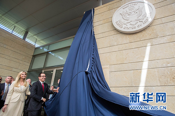 數(shù)百名官員參加了當(dāng)天的美國(guó)新使館開(kāi)館儀式。美國(guó)副國(guó)務(wù)卿沙利文率領(lǐng)美方代表團(tuán)出席儀式,其中包括美國(guó)總統(tǒng)特朗普的女兒伊萬(wàn)卡和她的丈夫庫(kù)什納,以及美財(cái)政部長(zhǎng)姆努欽。