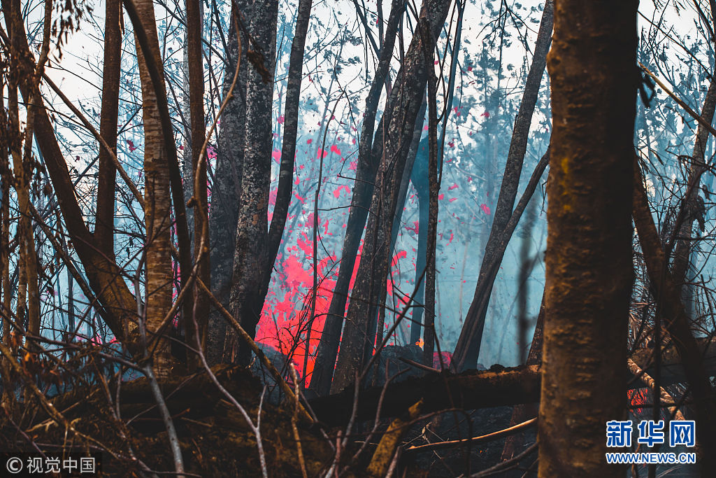 5月13日,美國(guó)夏威夷,基拉韋厄火山仍處于持續(xù)噴發(fā)的狀態(tài),火山周圍又出現(xiàn)了新的噴發(fā)裂縫。(圖片來(lái)源:視覺中國(guó))