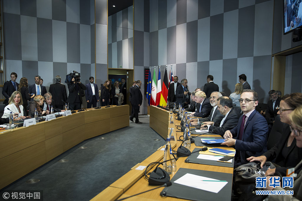 當?shù)貢r間2018年5月15日,比利時布魯塞爾,伊朗外長扎里夫當天在布魯塞爾會見了歐盟外交與安全政策高級代表莫蓋里尼,隨后與伊核協(xié)議簽署方三個歐洲簽署國德國、法國和英國的外長舉行會談。會后,扎里夫?qū)σ晾室了固m通訊社稱,雙方為了保護伊核協(xié)議剩余協(xié)議締約國的利益,進行了“良好的會談”,目前正處在“正確軌道上”。至于會談的具體內(nèi)容,與會各方均未透露。(圖片來源:視覺中國)