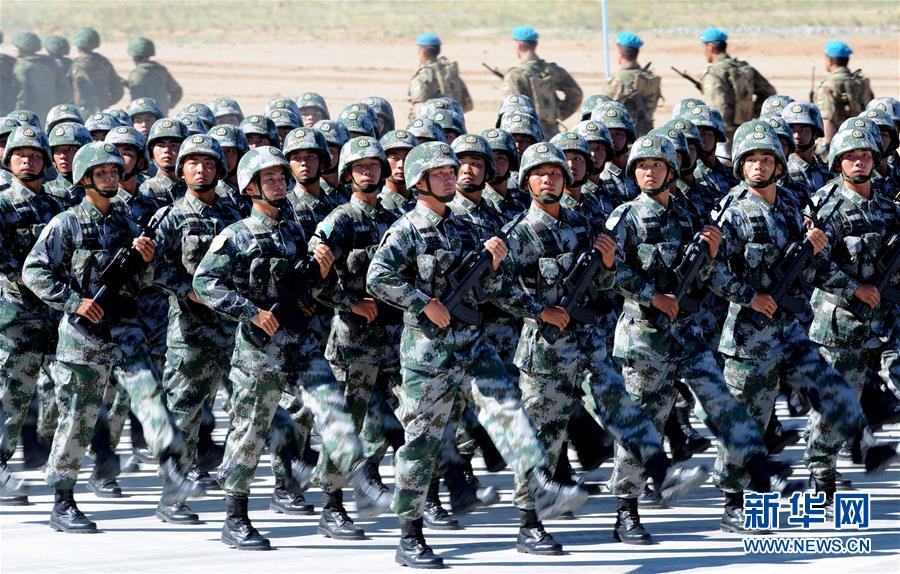 2014年8月24日,中國人民解放軍參演部隊在“和平使命—2014”上海合作組織成員國武裝力量聯(lián)合反恐軍事演習(xí)開始儀式上舉行分列式。17歲,恰如風(fēng)華正茂的青年。自世紀(jì)之初誕生于上海黃浦江畔,上海合作組織走過一段不平凡的發(fā)展歷程,和平穩(wěn)定能力不斷增強(qiáng)、發(fā)展動能不斷涌現(xiàn)、影響力不斷提升,邁入蓬勃發(fā)展新階段。17載風(fēng)雨同舟,上合組織走出了一條相互尊重、公平正義、合作共贏的新型國際關(guān)系之路。初夏6月,上合組織成員國元首理事會第十八次會議將在中國海濱城市青島舉行。弘揚“上海精神”、總結(jié)成功經(jīng)驗、共同規(guī)劃未來、推動擴(kuò)員后的上合組織加強(qiáng)新老成員間的合作,青島峰會必將成為上合組織發(fā)展史上一座新的里程碑,續(xù)寫這一新型區(qū)域組織的新篇章。新華社記者 張領(lǐng) 攝