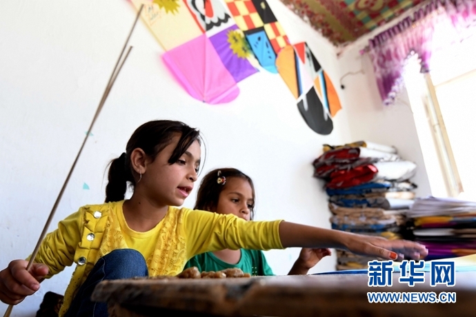 5月29日,在阿富汗首都喀布爾,希杰蘭(左)和妹妹在作坊內(nèi)扎風(fēng)箏。對(duì)于阿富汗這個(gè)飽經(jīng)戰(zhàn)火洗禮的國度,風(fēng)箏是人們難得的娛樂品。不少當(dāng)?shù)睾⒆佑H手制作風(fēng)箏貼補(bǔ)家用,可謂窮人的孩子早當(dāng)家。九歲的希杰蘭過去幾年共制作了上萬個(gè)風(fēng)箏。今年“六一”國際兒童節(jié)來臨之際,記者一行來到希杰蘭與家人位于喀布爾郊區(qū)的風(fēng)箏作坊。在略顯簡(jiǎn)陋的房間內(nèi),大大小小、五顏六色的紙張隨處可見,不足20平方米的作坊在陽光下如同一個(gè)彩色世界。新華社記者 代賀 攝