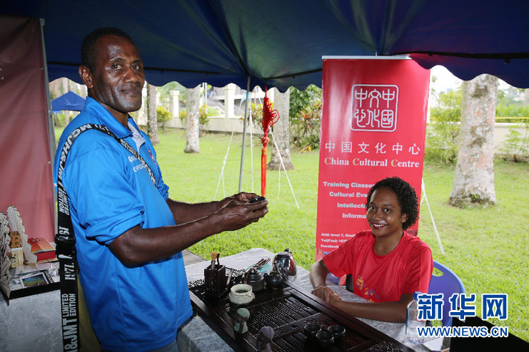 一位斐濟青年正準備品嘗中國名茶。 新華網(wǎng)記者張永興 攝