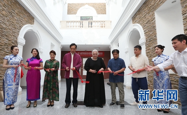 6月21日下午,中國畫家與白方嘉賓一起出席在白俄羅斯國家美術館舉辦的中國書畫家作品邀請展開幕式。新華網記者 魏忠杰攝
