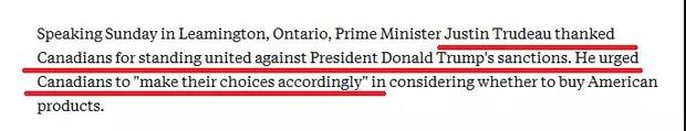 第三,大是大非上一定要團(tuán)結(jié)一致。一說(shuō)到團(tuán)結(jié),有的人總會(huì)聯(lián)想過(guò)于豐富:要么認(rèn)為這是要老百姓放棄自己的思考,要么認(rèn)為必須通過(guò)極端方式表達(dá)自己洶涌的激情——我們印象里一向溫和的加拿大,這次是怎么做的?用美聯(lián)社報(bào)道的話:特魯多在利明頓市演講時(shí)表示:感謝加拿大民眾團(tuán)結(jié)一致反對(duì)特朗普的制裁,并鼓勵(lì)民眾根據(jù)自己的實(shí)際情況做出要不要買美國(guó)產(chǎn)品的選擇。特魯多為什么這樣說(shuō)?事實(shí)上,自從G7之后特朗普攻擊特魯多“軟弱”“虛偽”以來(lái),推特上“購(gòu)買加拿大產(chǎn)品”“抵制美國(guó)貨”“抵制美國(guó)”“擺脫川普”等話題就在不斷升溫,很多加拿大人調(diào)整了消費(fèi)習(xí)慣,轉(zhuǎn)而購(gòu)買自己國(guó)家的產(chǎn)品。網(wǎng)友們的這些抵制活動(dòng),被特魯多稱為是一股“愛(ài)國(guó)熱情”。