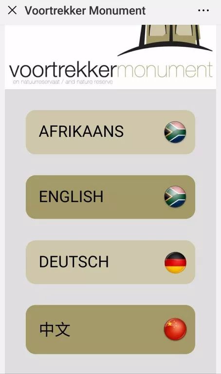 掃描二維碼后可以看到關(guān)于每幅浮雕的詳細說明,共有四種語言供選擇:南非荷蘭語、英語、德語和漢語。