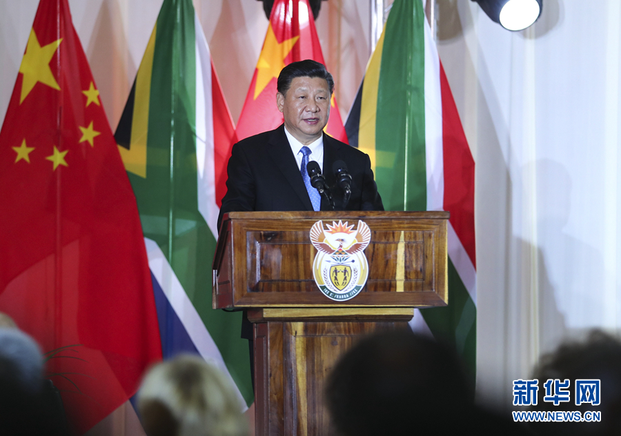 7月24日,國家主席習(xí)近平在比勒陀利亞出席南非總統(tǒng)拉馬福薩舉行的歡迎習(xí)近平主席對南非進行國事訪問暨慶祝中南建交20周年晚宴。這是習(xí)近平發(fā)表致辭。新華社記者 謝環(huán)馳 攝