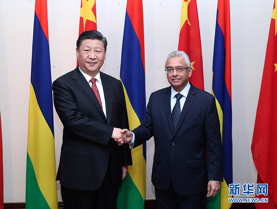 7月28日,國家主席習(xí)近平在毛里求斯會(huì)見毛里求斯總理賈格納特。 新華社記者 龐興雷 攝