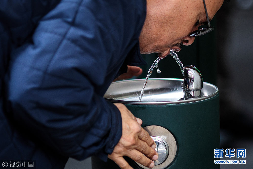 當(dāng)?shù)貢r(shí)間2018年8月28日,英國(guó)倫敦,民眾在公共飲水機(jī)旁飲水。倫敦市長(zhǎng)近日引進(jìn)了20個(gè)新的公共飲水機(jī),鼓勵(lì)人們自帶杯子取水喝,從而減少塑料垃圾。 (圖片來(lái)源:視覺(jué)中國(guó))