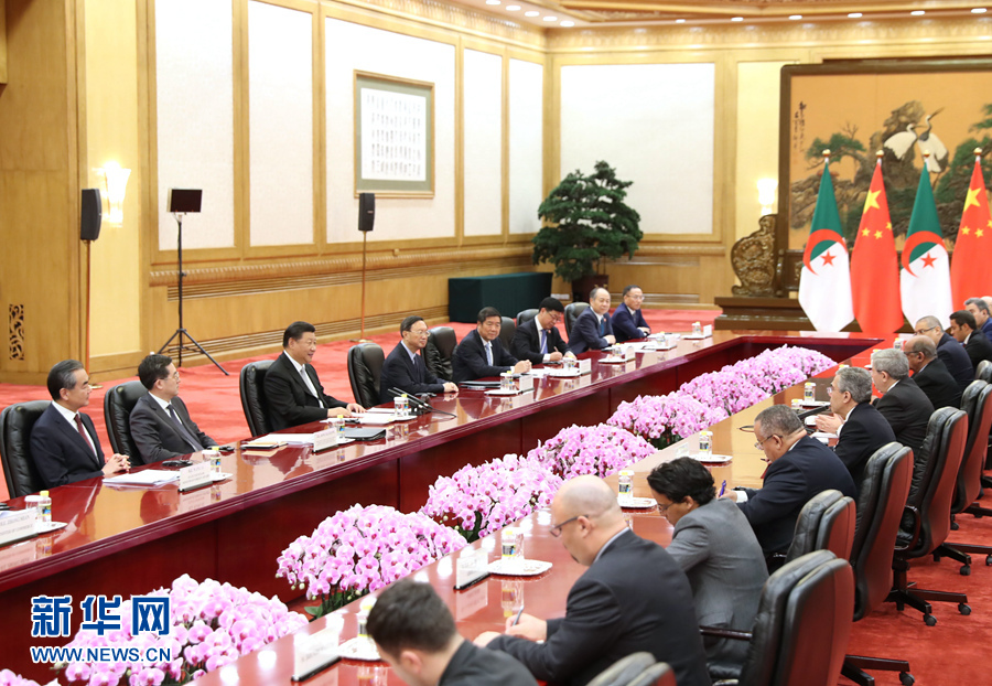 烏葉海亞表示,昨天,我向布特弗利卡總統(tǒng)報告了北京峰會的盛況。他讓我轉(zhuǎn)達(dá)對習(xí)近平主席的熱烈祝賀以及對中國支持非洲的衷心感謝。烏葉海亞表示,阿中關(guān)系歷史悠久。阿爾及利亞在爭取民族獨立和實現(xiàn)國家發(fā)展中得到中方寶貴支持,雙方在國際事務(wù)中一直緊密配合。阿方贊賞并支持北京峰會提出的中非合作新舉措,愿以此次雙方簽署“一帶一路”合作協(xié)議為契機,深化雙方務(wù)實合作。