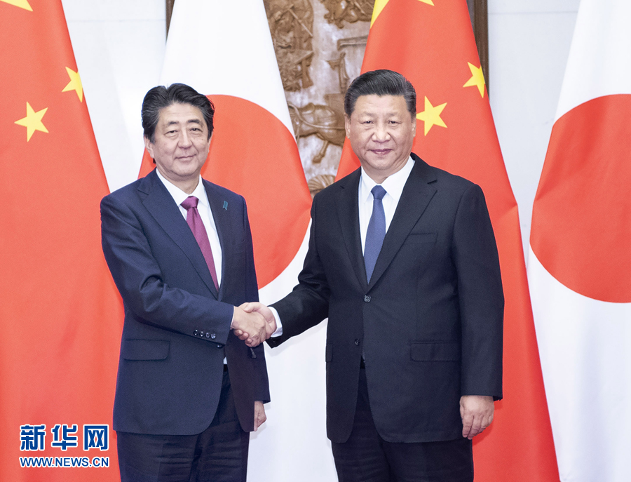 習(xí)近平歡迎安倍正式訪華,贊賞安倍近年來多次表明改善和發(fā)展中日關(guān)系的積極意愿。習(xí)近平指出,中日是近鄰,兩國利益高度交融。作為世界主要經(jīng)濟體和有重要影響的國家,中日關(guān)系長期健康穩(wěn)定發(fā)展,符合兩國人民根本利益,也是本地區(qū)和國際社會普遍期待。今年是中日和平友好條約締結(jié)40周年。1978年,兩國老一輩領(lǐng)導(dǎo)人締結(jié)和平友好條約,以法律形式確定了兩國持久和平友好大方向,為雙方開展互利合作、謀求共同發(fā)展以及妥善處理歷史、臺灣等敏感問題提供了堅實遵循和保障。在雙方共同努力下,當(dāng)前中日關(guān)系重回正常軌道,重現(xiàn)積極勢頭。這值得雙方共同珍惜。雙方要遵循中日四個政治文件確立的各項原則,堅持和平友好大方向,持續(xù)深化互利合作,推動中日關(guān)系在重回正軌基礎(chǔ)上得到新的發(fā)展。