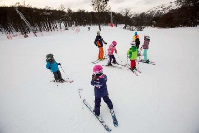 阿根廷南部城市烏斯懷亞,一群孩子在練習(xí)滑雪。(馬丁·薩巴拉攝)