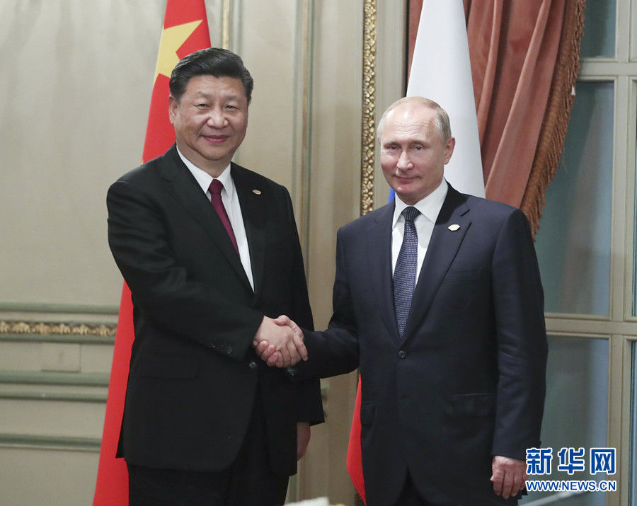 ——會見俄羅斯總統(tǒng)普京,指出明年是中俄建交70周年,這將是兩國關(guān)系發(fā)展的主線,屆時要舉辦隆重熱烈、豐富多彩的慶?;顒?,推動各領(lǐng)域務(wù)實合作取得更多實實在在的成果。