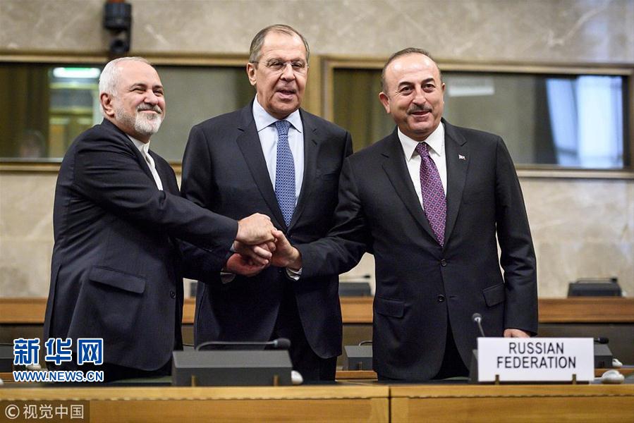 當(dāng)?shù)貢r間2018年12月18日,瑞士日內(nèi)瓦,俄羅斯、土耳其、伊朗三國外長與聯(lián)合國敘利亞問題特使一同出席會議,就成立敘利亞憲法委員會進行討論。(圖片來源:視覺中國)