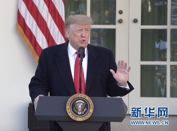 1月25日,美國總統(tǒng)特朗普在華盛頓白宮發(fā)表講話。新華社記者 胡友松 攝?