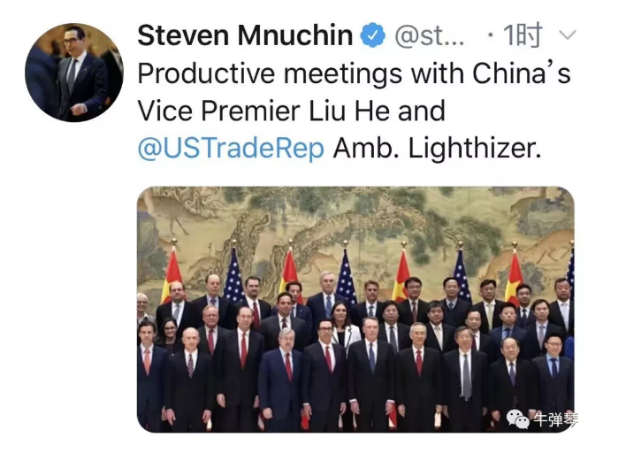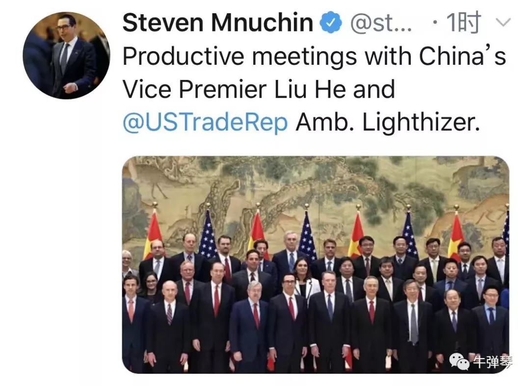 很有意思的,這次磋商一結(jié)束,美國財長姆努欽立刻發(fā)了一條推特,上面寫道:和劉鶴副總理、萊特希澤大使進(jìn)行了富有建設(shè)性的會議。