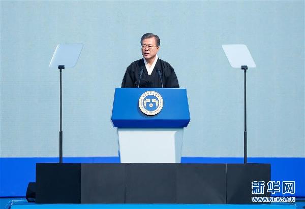 3月1日,韓國總統(tǒng)文在寅在首爾舉行的“三一運動”100周年大會上發(fā)表講話。 韓國總統(tǒng)文在寅1日在首爾光化門廣場出席紀(jì)念“三一運動”100周年大會時發(fā)表講話表示,韓國將力推構(gòu)建“新半島體系”,實現(xiàn)韓朝之間共建“和平合作共同體”和“經(jīng)濟合作共同體”。新華社記者 王婧嬙 攝