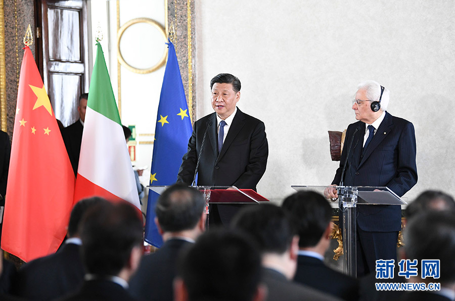習(xí)近平強(qiáng)調(diào),明年是中意建交50周年,兩國將互辦文化旅游年,各領(lǐng)域合作將迎來新的機(jī)遇。中方愿同意大利各界一道努力,推動兩國關(guān)系在互利共贏大路上行穩(wěn)致遠(yuǎn),為促進(jìn)中歐互聯(lián)互通乃至世界發(fā)展繁榮作出新的貢獻(xiàn)。希望中意企業(yè)界、文化界人士在各自領(lǐng)域?yàn)閮蓢献髫暙I(xiàn)更多智慧和力量。