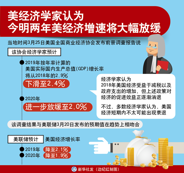 新華社華盛頓3月25日電(記者許緣 鄧仙來)美國全國商業(yè)經(jīng)濟(jì)協(xié)會(huì)25日發(fā)布前景調(diào)查報(bào)告說,該協(xié)會(huì)經(jīng)濟(jì)學(xué)家預(yù)測(cè),主要受全球經(jīng)濟(jì)增長(zhǎng)放緩和美國貿(mào)易政策影響,今明兩年美國經(jīng)濟(jì)增速將大幅放緩。