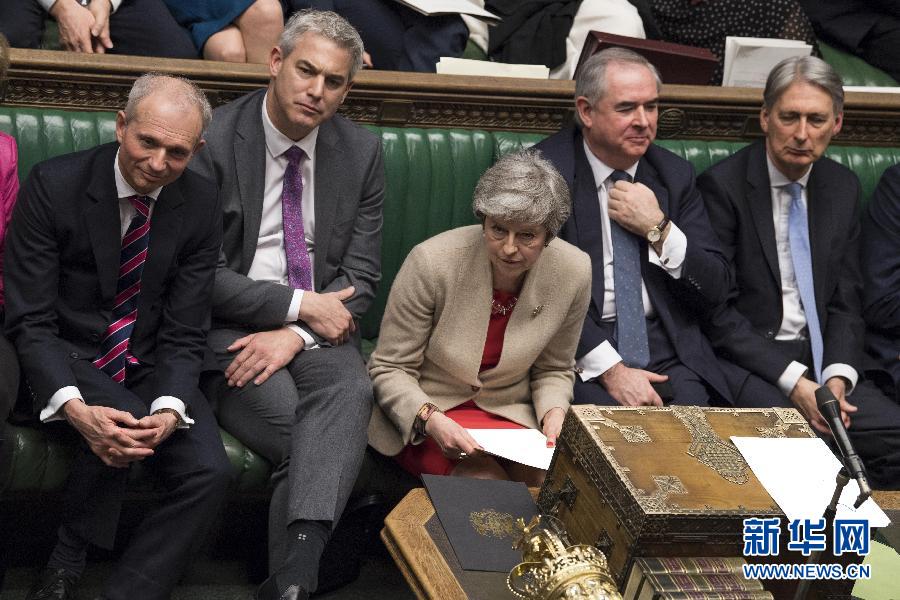3月29日,在英國(guó)倫敦,英國(guó)首相特雷莎·梅(中)出席議會(huì)下院辯論。 新華社發(fā)(英國(guó)議會(huì)攝影師馬克·達(dá)菲攝)