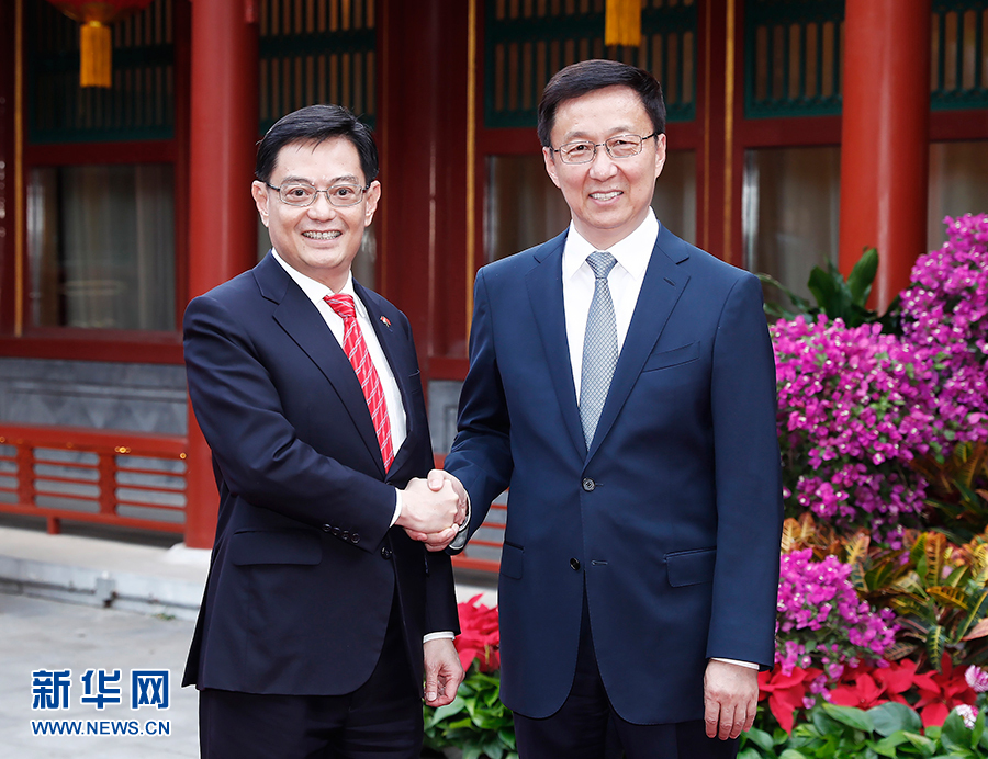 韓正表示,中方高度重視中新關系,明年兩國將迎來建交30周年,雙方要以此為契機,推動中新關系在新時期實現(xiàn)更大發(fā)展。中方愿同新方一道,落實好兩國領導人共識,繼續(xù)用好合作機制平臺,推動各領域務實合作取得更大發(fā)展。雙方要保持密切溝通,高質量共建“一帶一路”,建設好“陸海新通道”,深化第三方市場合作,開展粵港澳大灣區(qū)建設合作,發(fā)揮示范和帶動效應,推動地區(qū)和沿線國家共同發(fā)展。