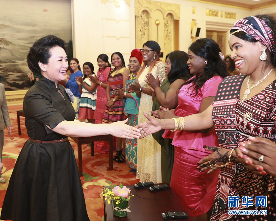 5月30日,國家主席習(xí)近平夫人彭麗媛在北京人民大會堂會見中華女子學(xué)院國際碩士研究生。 新華社記者 龐興雷 攝