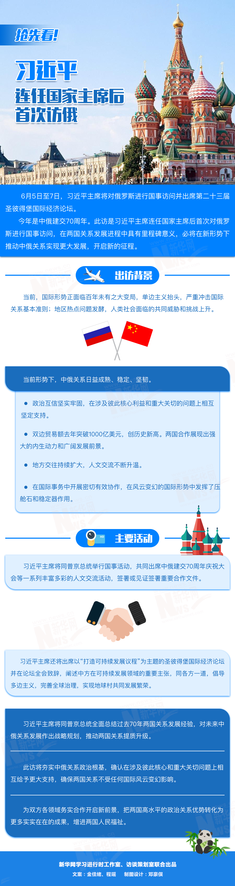 訪問期間,習(xí)近平主席還將出席圣彼得堡國(guó)際經(jīng)濟(jì)論壇,在論壇全會(huì)致辭,闡述中方在可持續(xù)發(fā)展領(lǐng)域的重要主張,同各方一道,倡導(dǎo)多邊主義,完善全球治理,實(shí)現(xiàn)地球村共同發(fā)展繁榮。