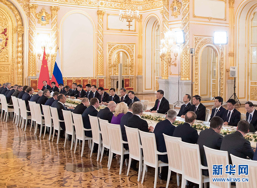 6月5日,國家主席習(xí)近平在莫斯科克里姆林宮同俄羅斯總統(tǒng)普京會談。 新華社記者 李學(xué)仁 攝