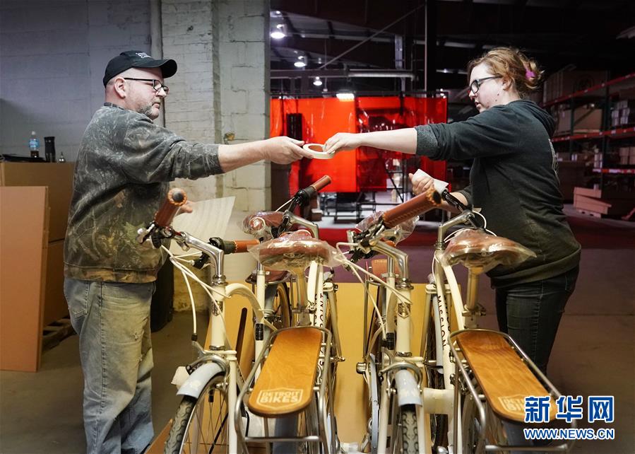 2019年5月21日,工作人員在美國(guó)密歇根州底特律市一家自行車廠工作。新華社記者 劉杰 攝