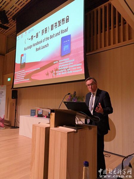 趙劍英首先對(duì)《“一帶一路”手冊(cè)》英文版的出版發(fā)行表示祝賀,作為《“一帶一路”手冊(cè)》中文版的發(fā)起者和出版方,他介紹,由中國社會(huì)科學(xué)出版社和英國羅得里奇出版社共同策劃的《“一帶一路”手冊(cè)》是全球首部以“一帶一路”倡議為主要內(nèi)容的百科讀本。這部手冊(cè)在第二屆一帶一路國際合作高峰論壇現(xiàn)場(chǎng)展示中獲得熱烈反響。內(nèi)容涉及“一帶一路”倡議的歷史傳承、產(chǎn)生與框架、“五路”、“五通”、六大經(jīng)濟(jì)走廊、中國特色大國外交理念、國際上相關(guān)行動(dòng)計(jì)劃等11個(gè)主要部分,涵蓋近年來與“一帶一路”有關(guān)的117個(gè)詞條。這部手冊(cè)全面、完整、系統(tǒng)地展現(xiàn)“一帶一路”倡議本身及與之有關(guān)的概念和領(lǐng)域,是迄今為止一帶一路理論和實(shí)踐初步成果的階段性匯總。為促進(jìn)國際社會(huì)深刻理解一帶一路偉大戰(zhàn)略構(gòu)想提供了學(xué)術(shù)引導(dǎo)價(jià)值。探索一帶一路的規(guī)律,建立規(guī)范型理論框架和恰逢其時(shí),英文版的出版必然會(huì)為一帶一路匯聚廣泛的國際共識(shí),為構(gòu)建人類命運(yùn)共同體添磚加瓦。據(jù)趙劍英社長(zhǎng)介紹,社科出版社在一帶一路研究英文譯介出版發(fā)行的基礎(chǔ)上,未來還將增進(jìn)西語、葡語、阿拉伯語、俄語等一帶一路沿線語種譯介出版,為一帶一路行穩(wěn)致遠(yuǎn)提供學(xué)理支撐。